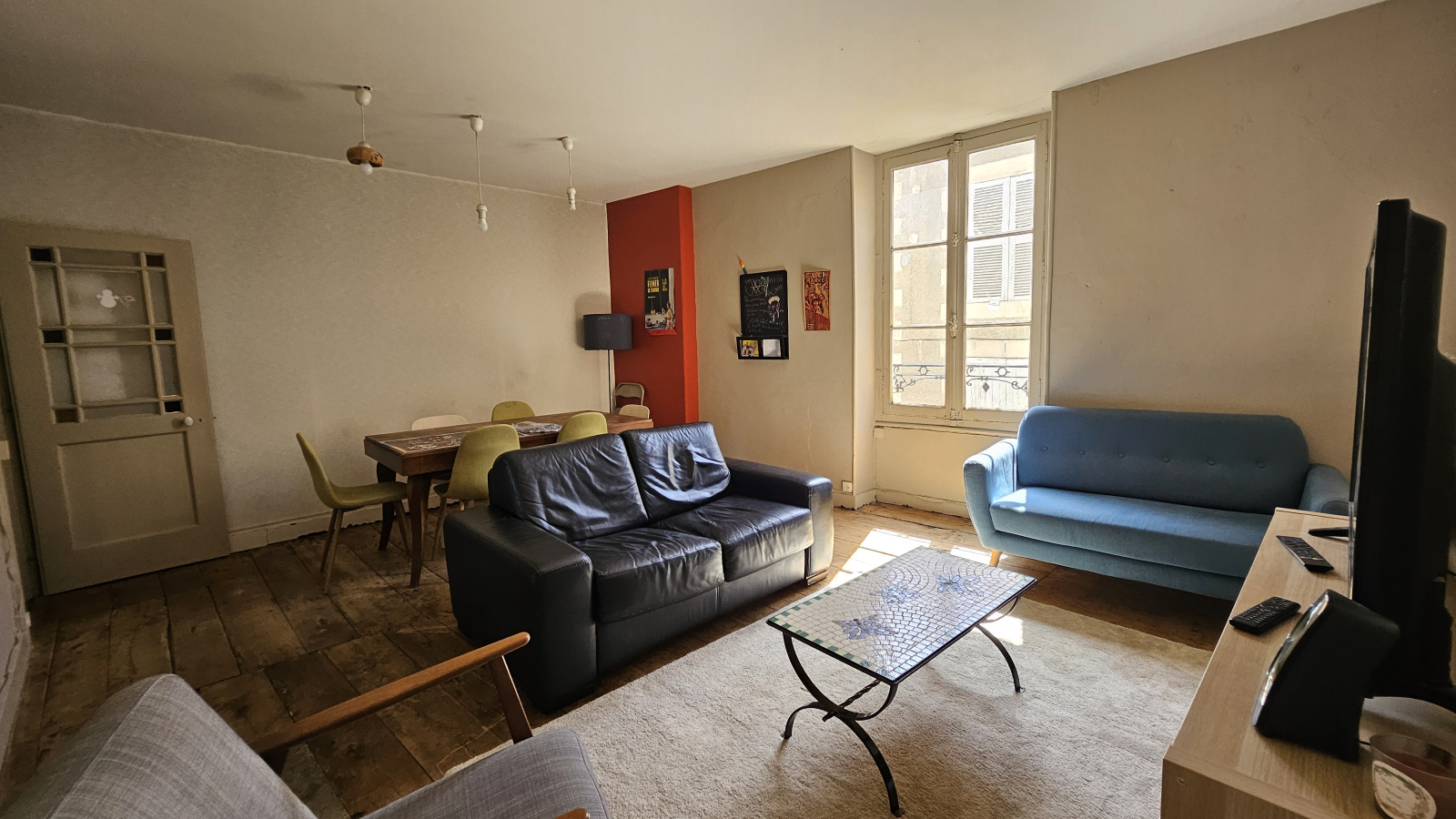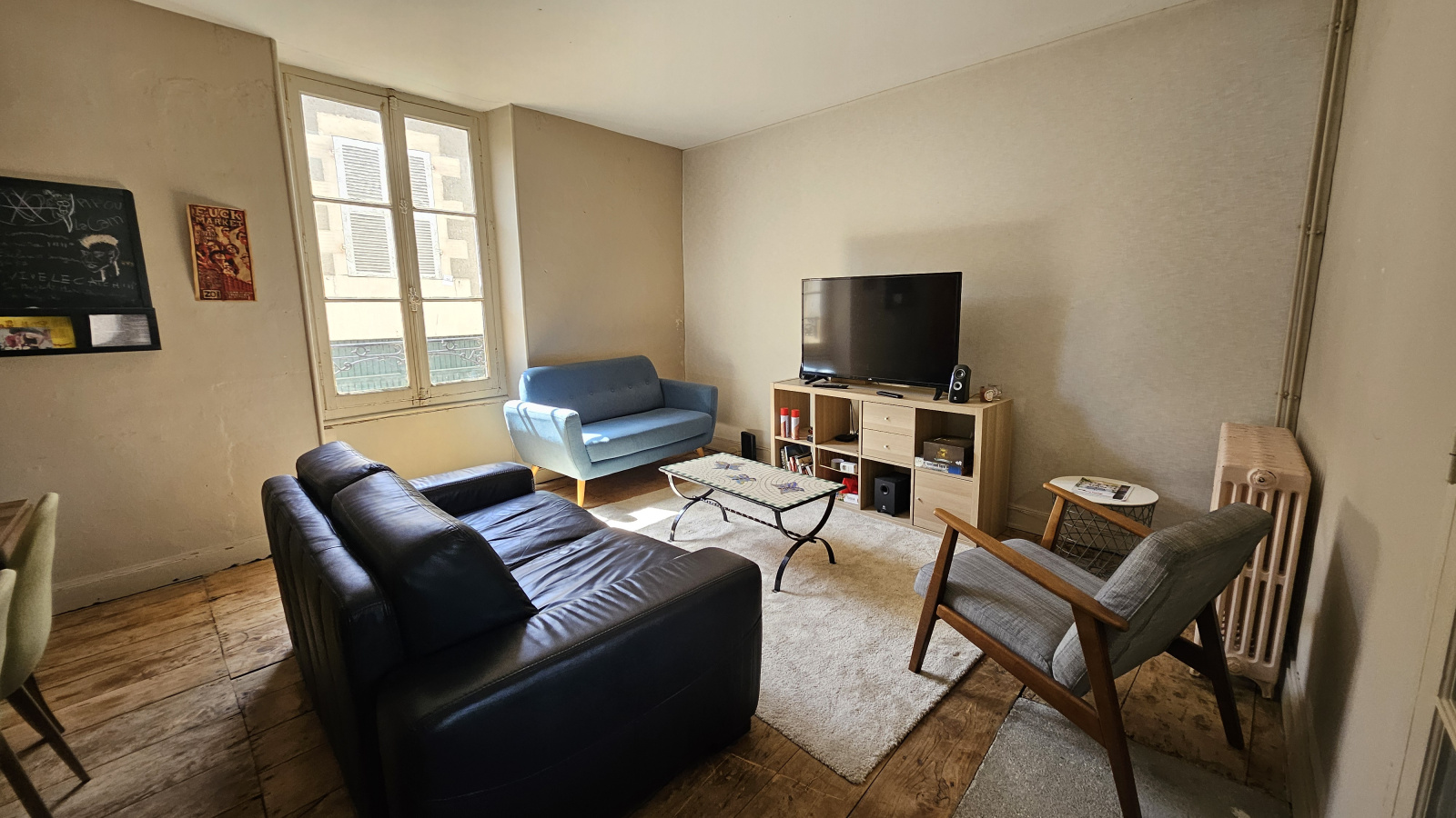 Charges : 80€ (eau, entretien des communs, box internet et tv, taxe ordures ménagères, électricité, chauffage, provisions régularisées annuellement)